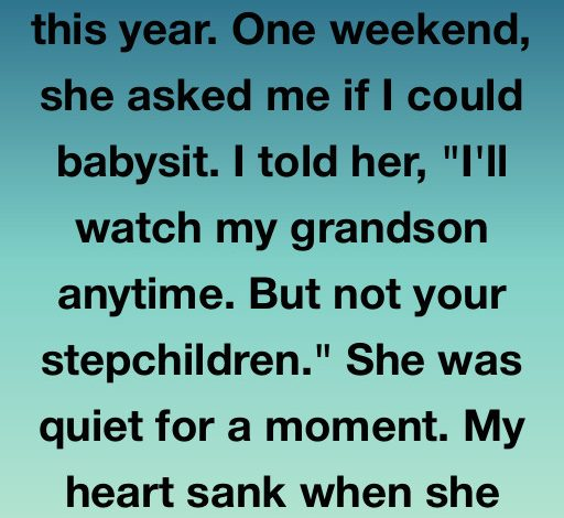 One weekend, Clara asked me to watch her children while she and her new husband, Darren, spent some time together. I answered honestly, but the words immediately caused tension: “I’ll watch Mason anytime… but not your stepchildren.” Silence followed. Then Clara’s calm but firm reply: “You either babysit all of them, or none of them.”