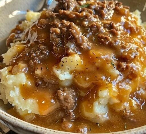 Mashed Potatoes with Ground Beef Gravy (Classic Comfort Food)